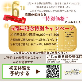 おかげさまでがじゅまる鍼灸整骨院は11月5日に6周年を迎えることができました!